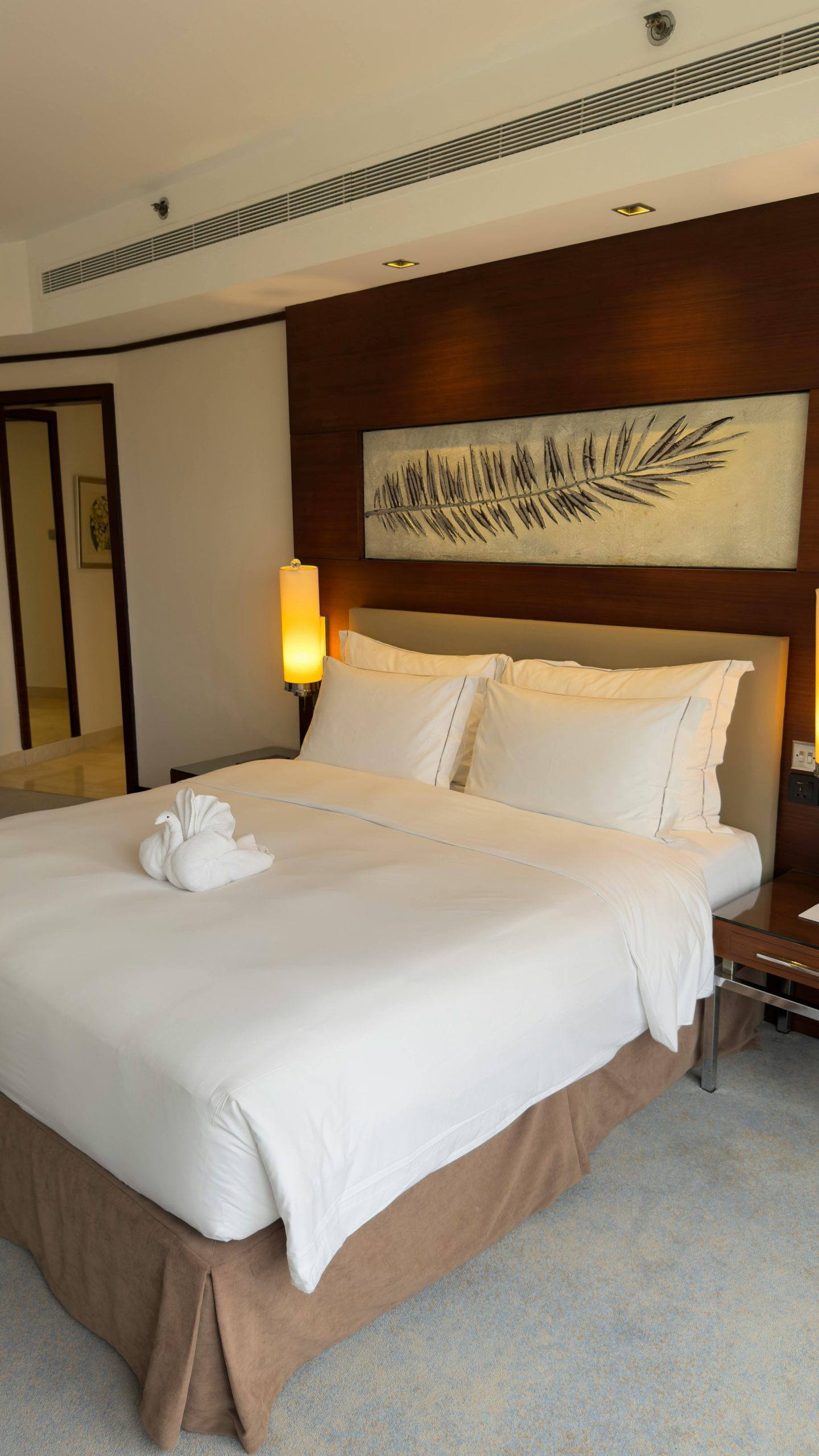 Welcome to our luxury king-size serviced hotel room, a sophisticated, welcoming retreat designed for discerning business and leisure travellers seeking premium short or extended stay accommodation in Loughborough, Leicestershire. Boasting elegant dark wood finishes, premium hotel-quality linens, and thoughtful decorative touches (including our signature towel swan welcome), this spacious room offers a serene, upscale home-from-home in the heart of the East Midlands. All listings are fully compliant with UK hospitality, consumer protection, and advertising regulations to ensure complete transparency and trust for all guests.